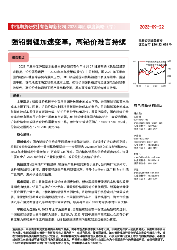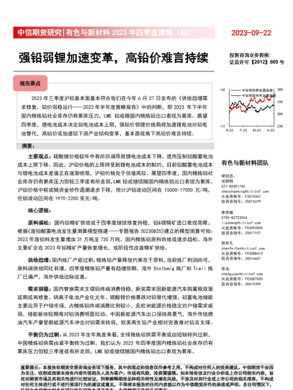 【中信期货】【20230922】有色与新材料2023年四季度策略报告(铅):强铅弱锂加速变革,高铅价难言持续-25页