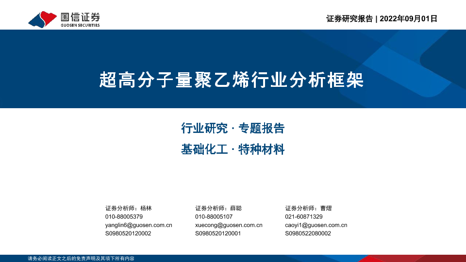 【国信证券】【20220901】基础化工行业专题报告:超高分子量聚乙烯行业分析框架-34页