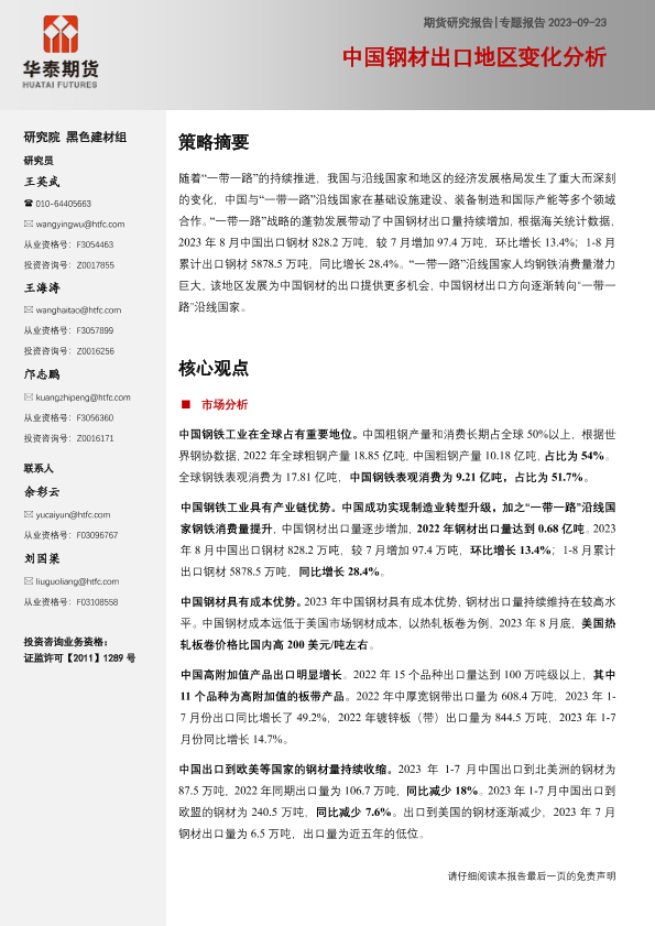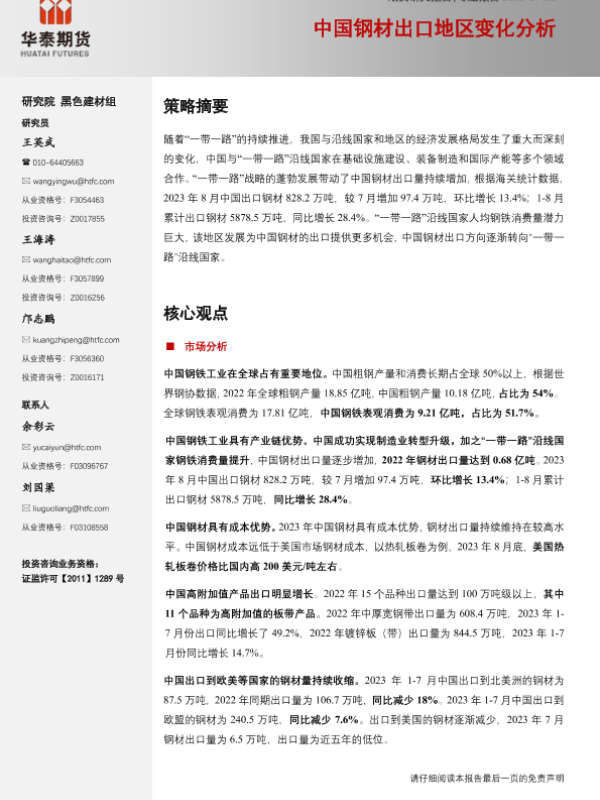 【华泰期货】【20230923】专题报告:中国钢材出口地区变化分析-20页