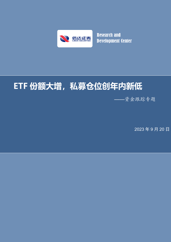 【信达证券】【20230920】资金跟踪专题:ETF份额大增,私募仓位创年内新低-17页