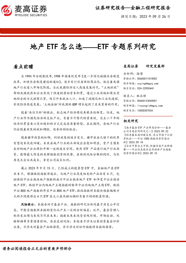 【麦高证券】【20230926】ETF专题系列研究:地产ETF怎么选-30页