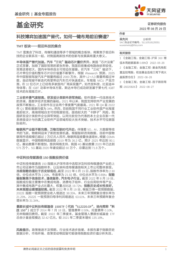 【天风证券】【20220829】基金专题报告:科技博弈加速国产替代,如何一键布局前沿赛道?-24页