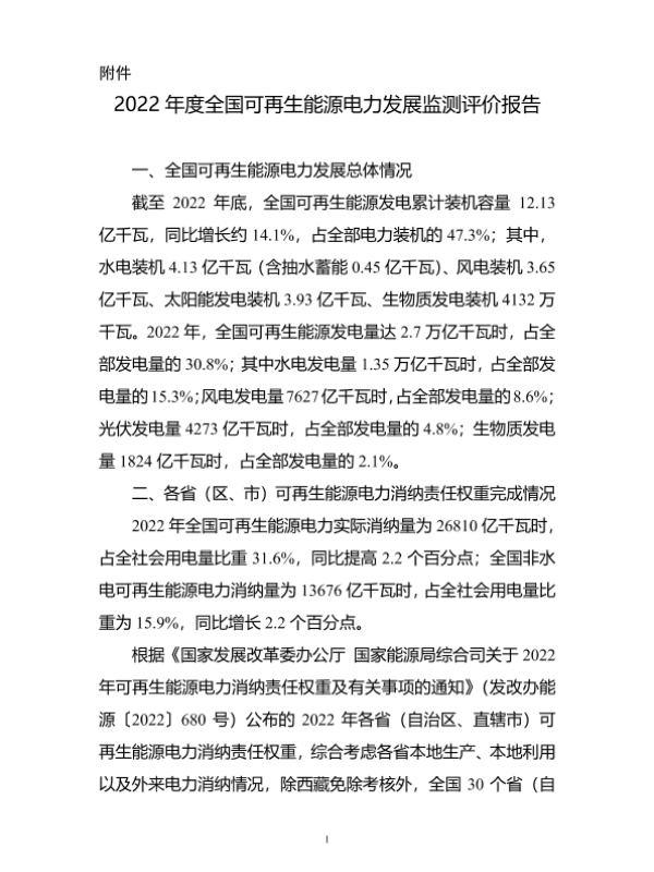 【国家发展改革委办公厅国家能源局综合司】【2022】2022年度全国可再生能源电力发展监测评价报告-12页