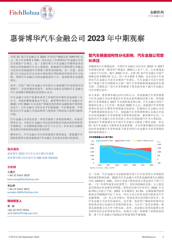 【惠誉博华】【20230920】惠誉博华-汽车金融公司2023年中期观察-6页