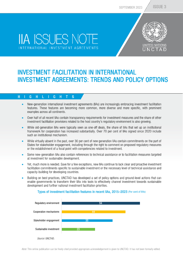 【联合国贸易发展委员会】【202309】国际投资协定中的投资便利化:趋势和政策选择-16页