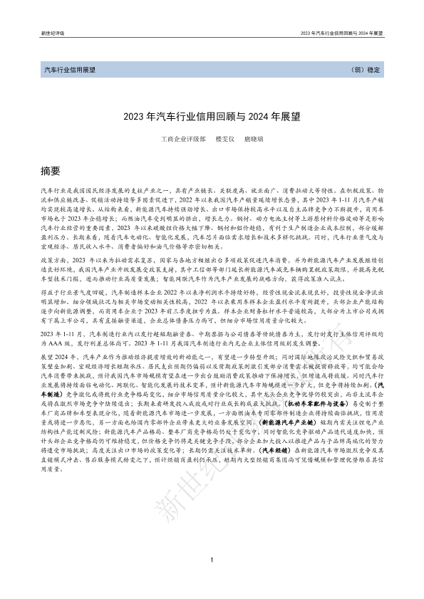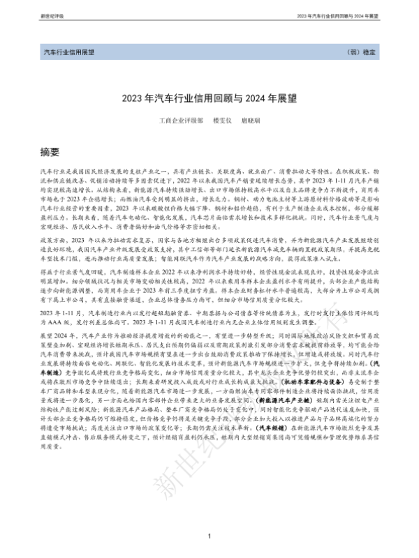 【新世纪评级】【2023】2023年汽车行业信用回顾与2024年展望-32页