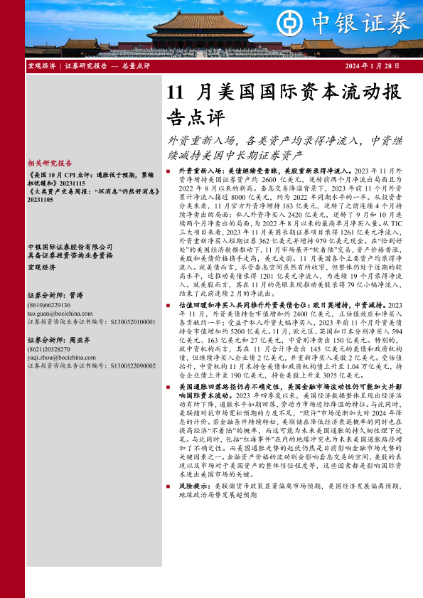 【中银证券】【20240128】11月美国国际资本流动报告点评:外资重新入场,各类资产均录得净流入,中资继续减持美国中长期证券资产-13页