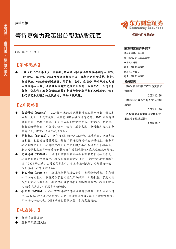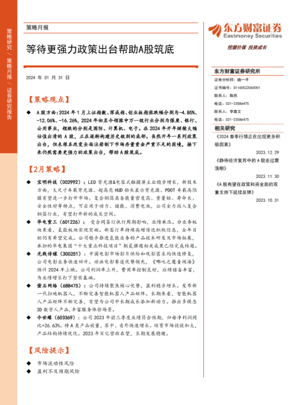 【东方财富证券】【20240131】策略月报:等待更强力政策出台帮助A股筑底-14页
