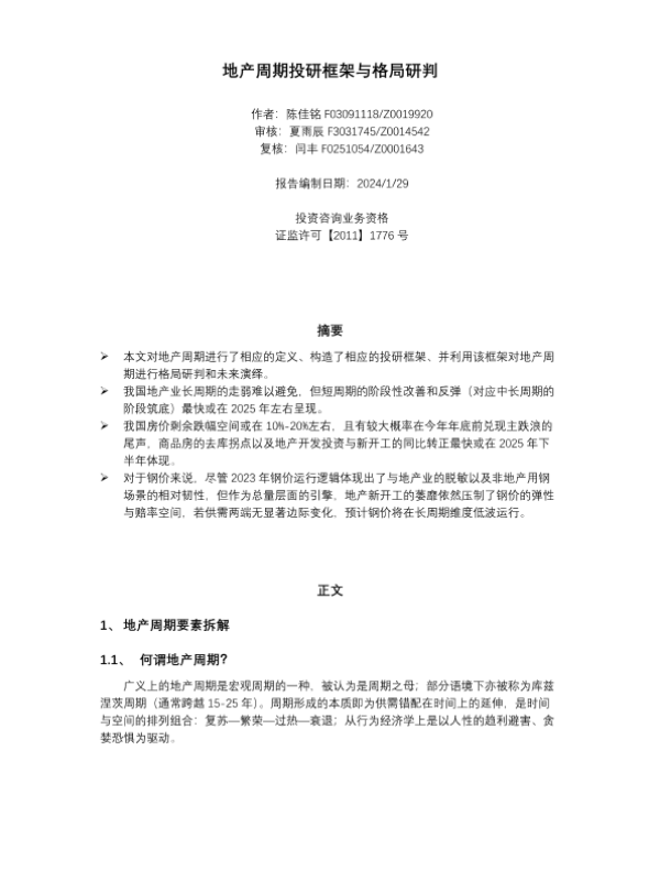 【华安期货】【20240129】地产周期投研框架与格局研判-15页
