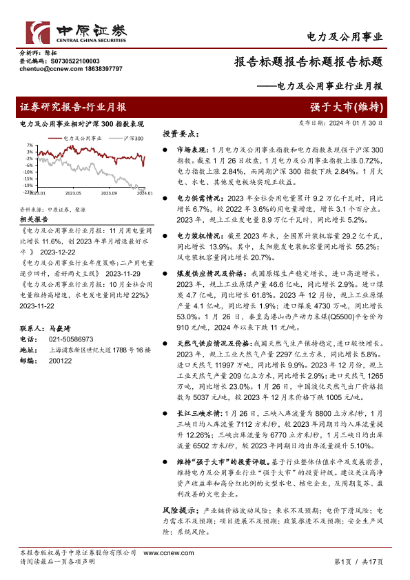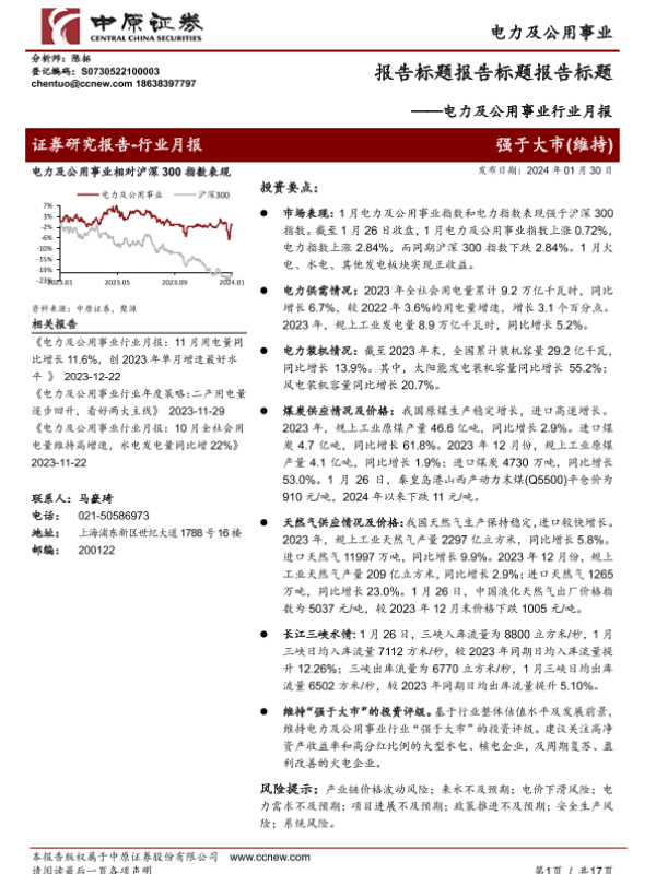 【中原证券】【20240130】电力及公用事业行业月报-17页