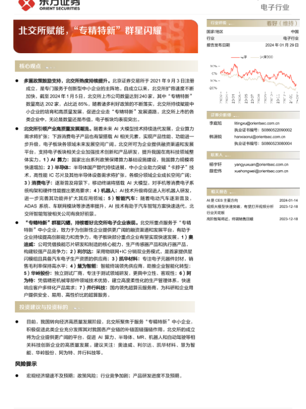 【东方证券】【20240129】电子行业深度报告:北交所赋能,“专精特新”群星闪耀-36页