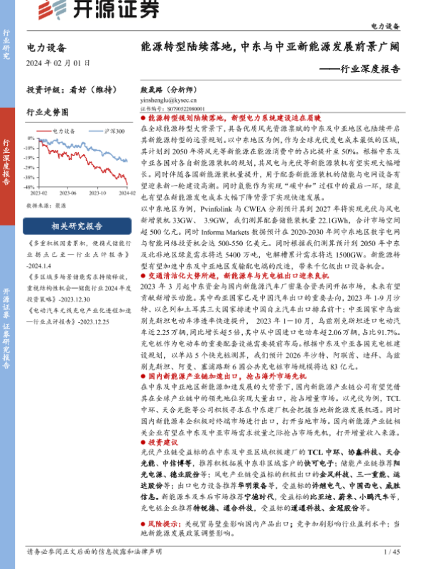 【开源证券】【20240201】电力设备行业深度报告:能源转型陆续落地,中东与中亚新能源发展前景广阔-45页