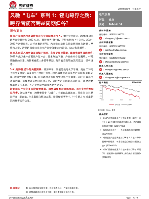 【五矿证券】【20240131】风驰“电车”系列1:锂电跨界之殇:跨界者能否跨越周期低谷?-14页