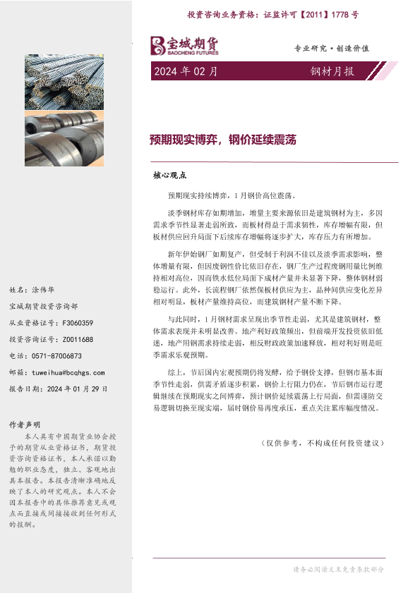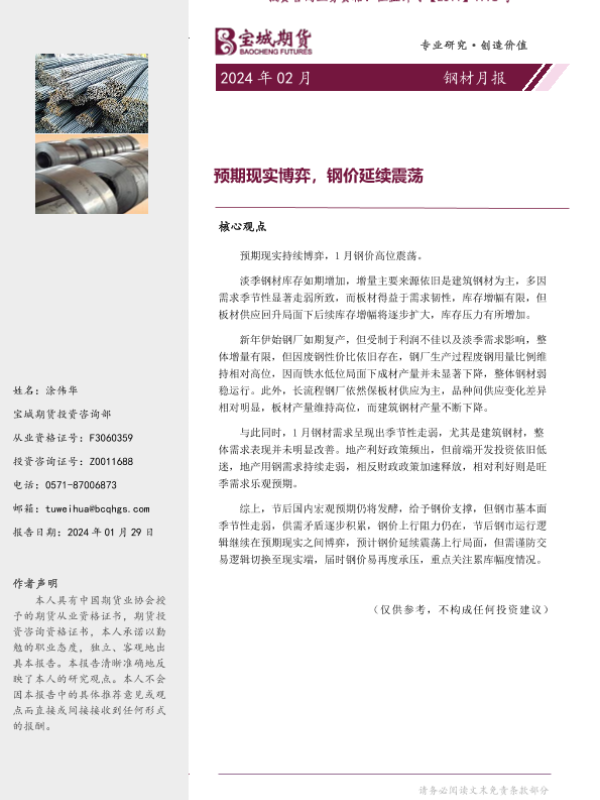 【宝城期货】【20240129】钢材月报:预期现实博弈,钢价延续震荡-21页