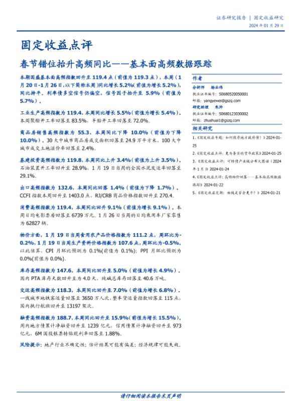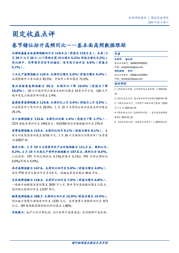 【国盛证券】【20240129】固定收益点评:基本面高频数据跟踪-春节错位抬升高频同比-16页