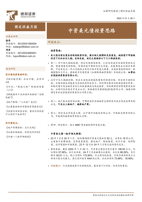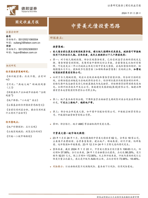 【德邦证券】【20240129】固定收益月报:中资美元债投资思路-12页