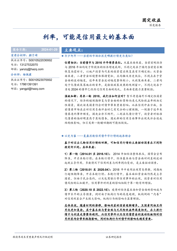 【华安证券】【20240129】固定收益深度报告:利率,可能是信用最大的基本面-32页