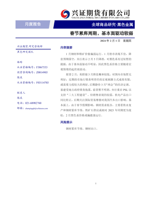 【兴证期货】【20240201】黑色金属月度报告:春节累库周期,基本面驱动较弱-15页