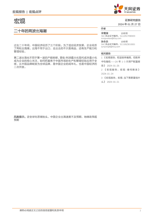 【天风证券】【20240127】宏观点评:二十年的两波出海潮-12页