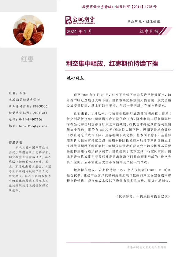 【宝城期货】【20240130】红枣月报:利空集中释放,红枣期价持续下挫-16页