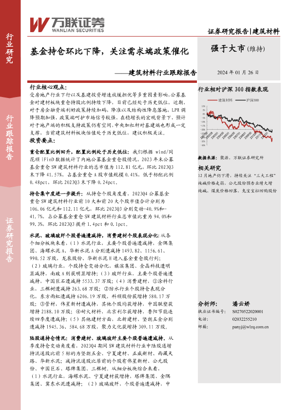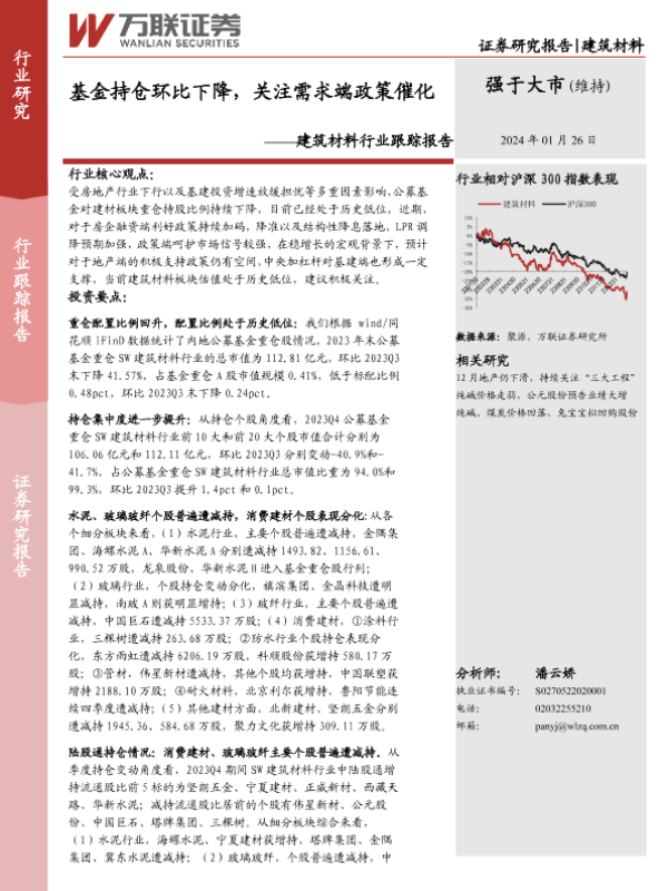 【万联证券】【20240126】建筑材料行业跟踪报告:基金持仓环比下降,关注需求端政策催化-11页