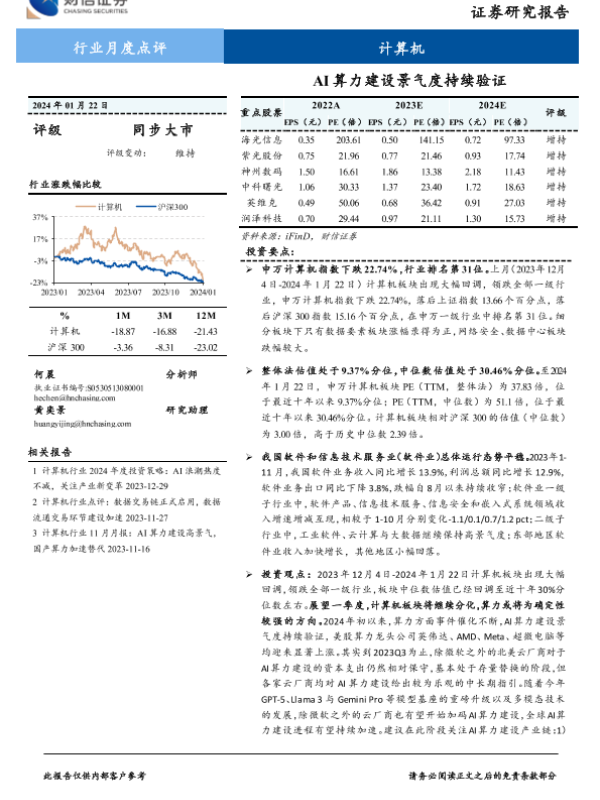 【财信证券】【20240122】计算机行业月度点评:AI算力建设景气度持续验证-14页