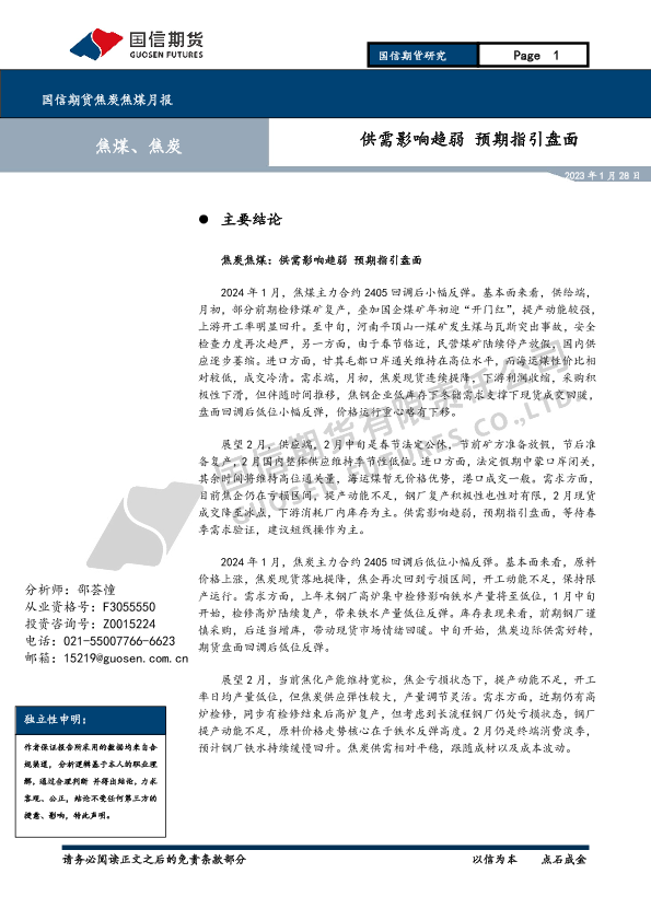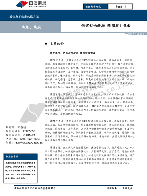 【国信期货】【20240128】焦炭焦煤月报:供需影响趋弱 预期指引盘面-11页