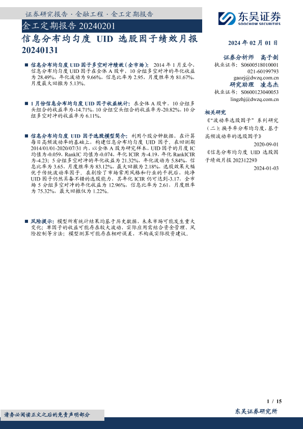 【东吴证券】【20240201】金工定期报告:信息分布均匀度UID选股因子绩效月报-15页