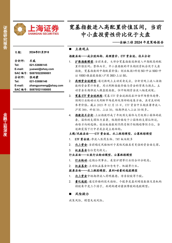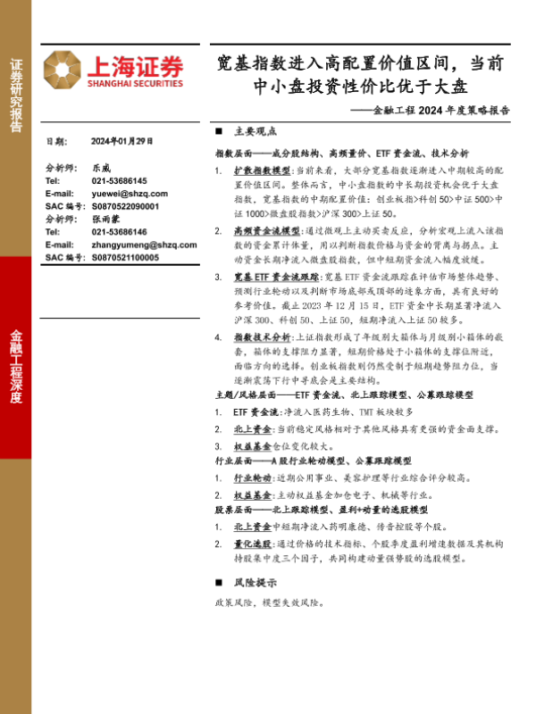 【上海证券】【20240129】金融工程2024年度策略报告:宽基指数进入高配置价值区间,当前中小盘投资性价比优于大盘-22页