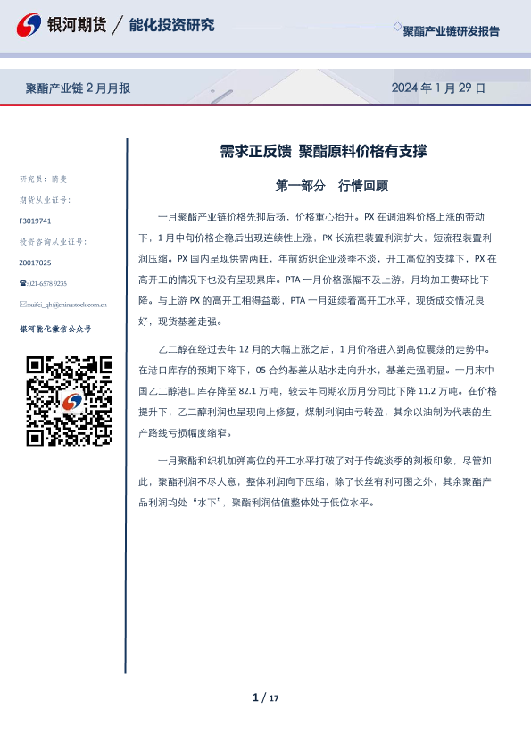 【银河期货】【20240129】聚酯产业链2月月报:需求正反馈 聚酯原料价格有支撑-17页