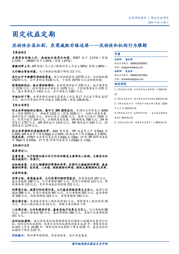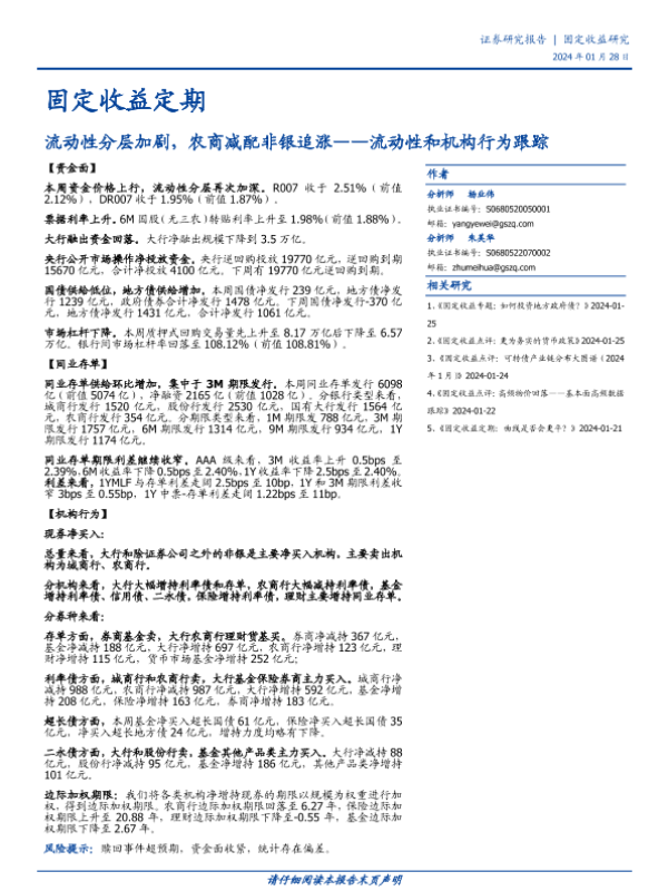 【国盛证券】【20240128】流动性和机构行为跟踪:流动性分层加剧,农商减配非银追涨-13页