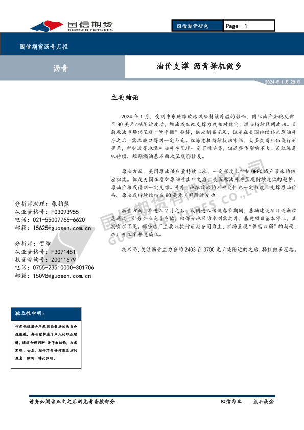 【国信期货】【20240128】沥青月报:油价支撑 沥青择机做多-11页