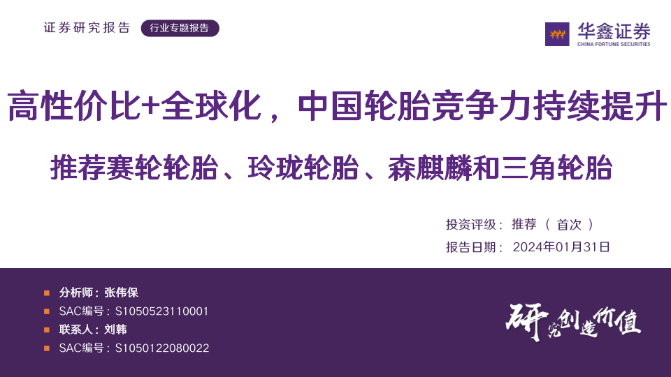 【华鑫证券】【20240131】轮胎行业专题报告:高性价比+全球化,中国轮胎竞争力持续提升-63页