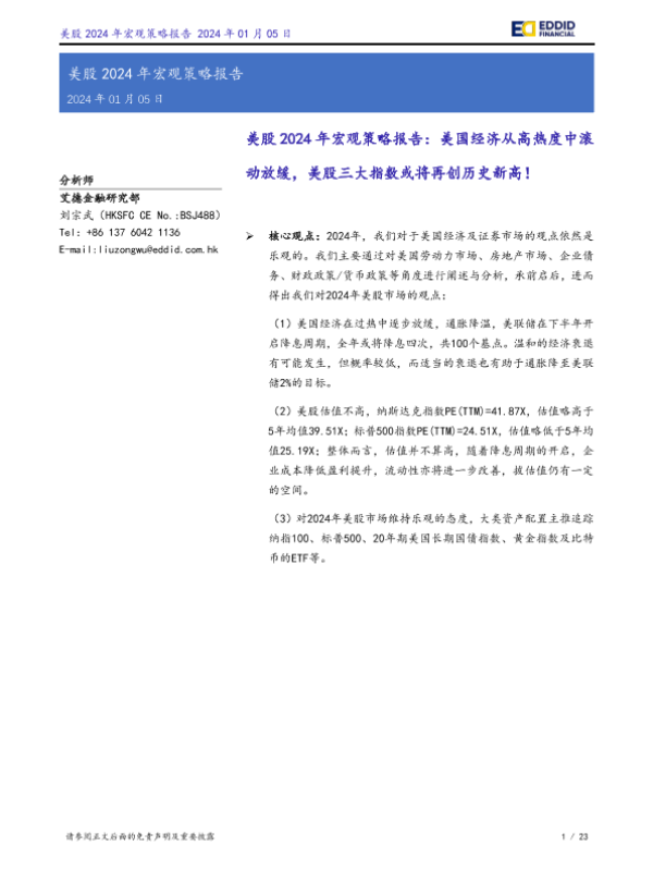 【艾德证券期货】【20240105】美股2024年宏观策略报告:美国经济从高热度中滚动放缓,美股三大指数或将再创历史新高!-23页