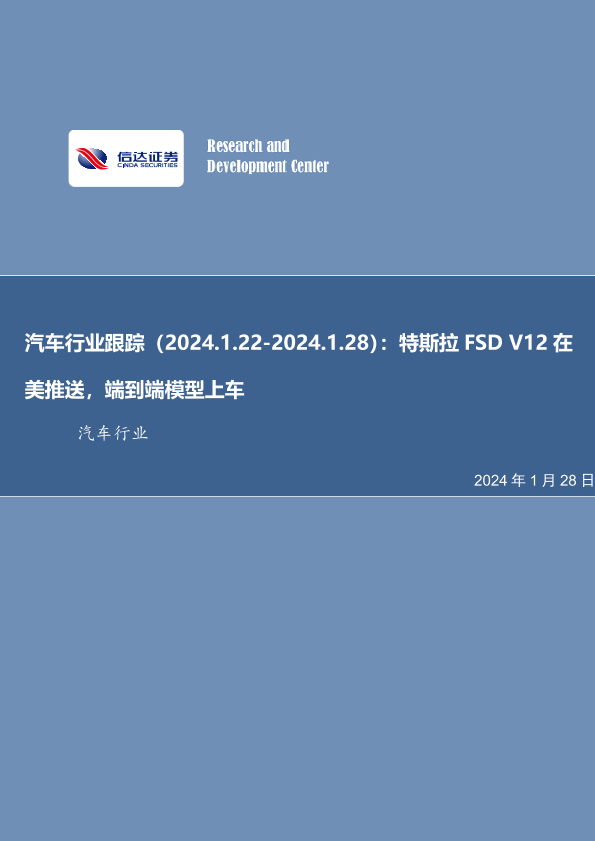 【信达证券】【20240128】汽车行业跟踪:特斯拉FSD V12在美推送,端到端模型上车-24页