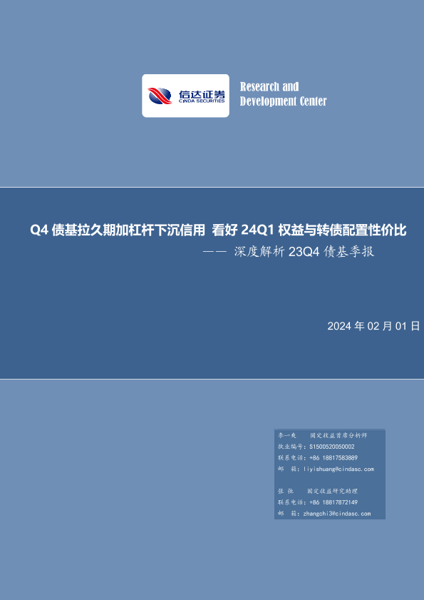 【信达证券】【20240201】深度解析23Q4债基季报:Q4债基拉久期加杠杆下沉信用 看好24Q1权益与转债配置性价比-27页