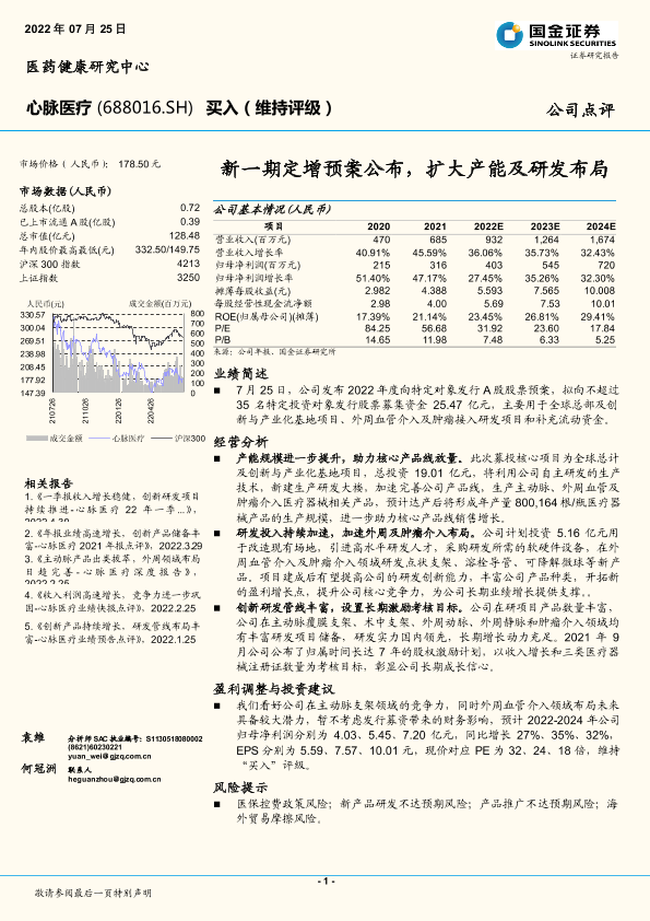 【国金证券】【20220725】新一期定增预案公布,扩大产能及研发布局-4页