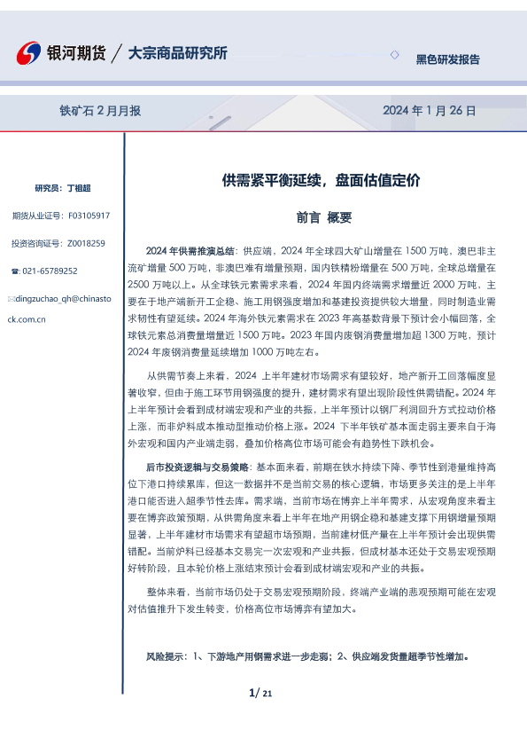 【银河期货】【20240126】铁矿石2月月报:供需紧平衡延续,盘面估值定价-21页