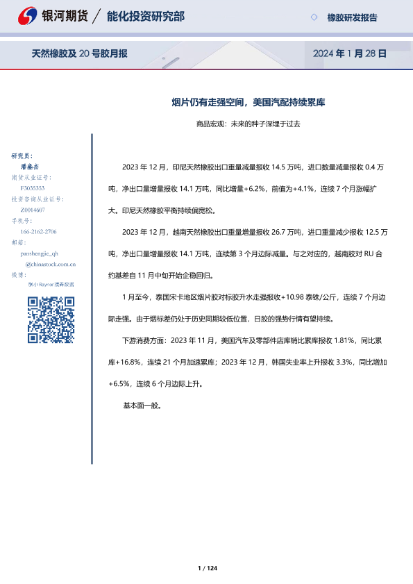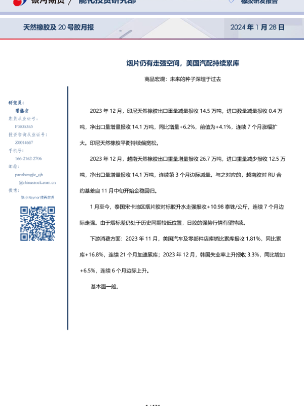 【银河期货】【20240128】天然橡胶及20号胶月报:烟片仍有走强空间,美国汽配持续累库-124页