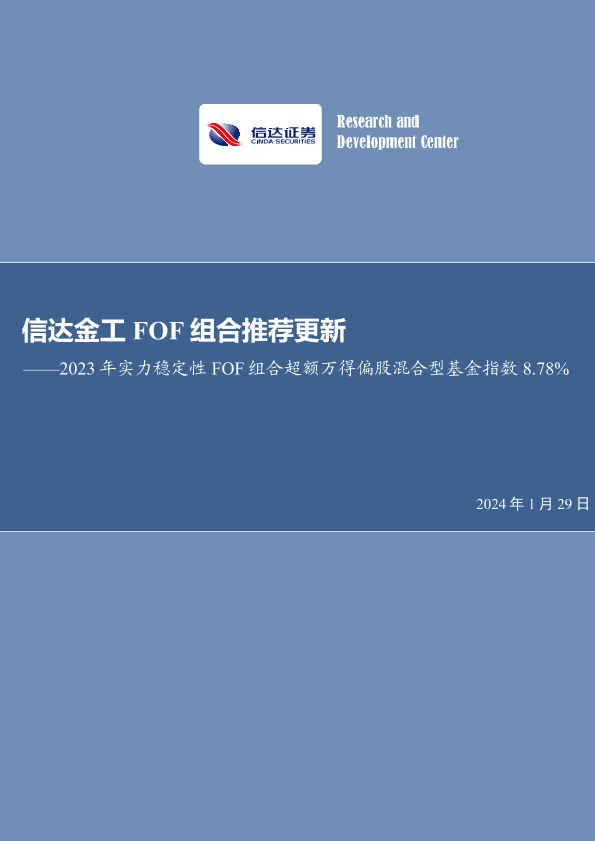 【信达证券】【20240129】信达金工FOF组合推荐更新:2023年实力稳定性FOF组合超额万得偏股混合型基金指数8.78%-24页
