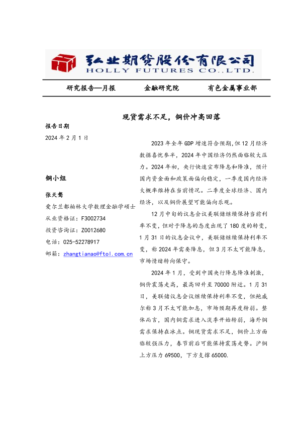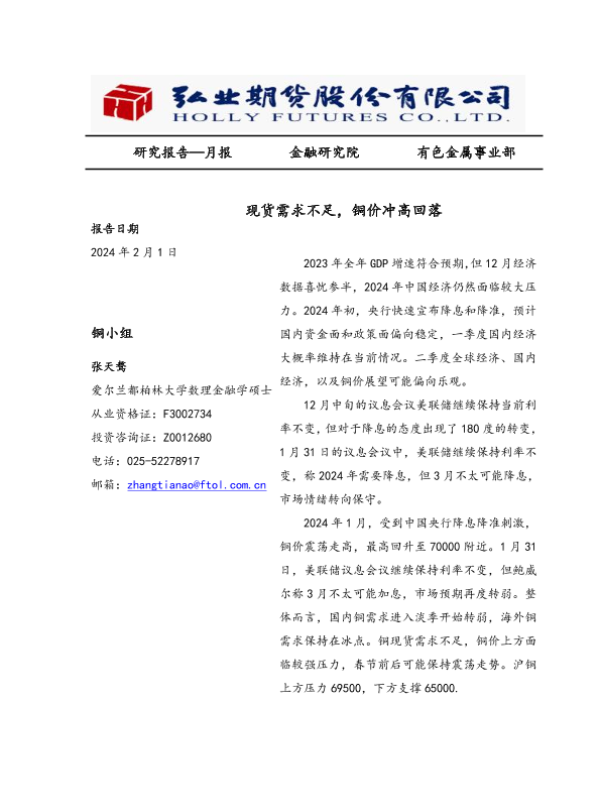 【弘业期货】【20240201】现货需求不足,铜价冲高回落-11页