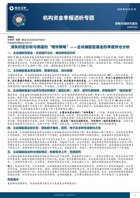 【国金证券】【20240131】主动偏股型基金四季度持仓分析:消失的定价权与倒逼的“哑铃策略”-23页