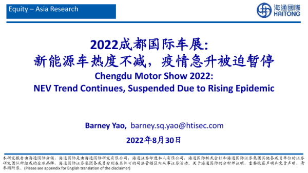 【海通国际】【20220830】新能源车行业2022成都国际车展:新能源车热度不减,疫情急升被迫暂停-53页