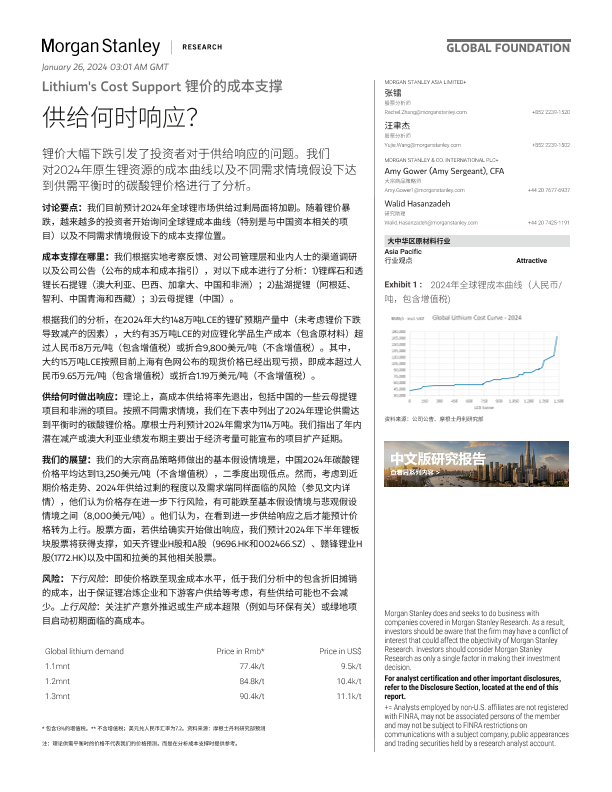 【Morgan Stanley】【2024】Morgan Stanley-Lithium's Cost Support 供给何时响应?-11页