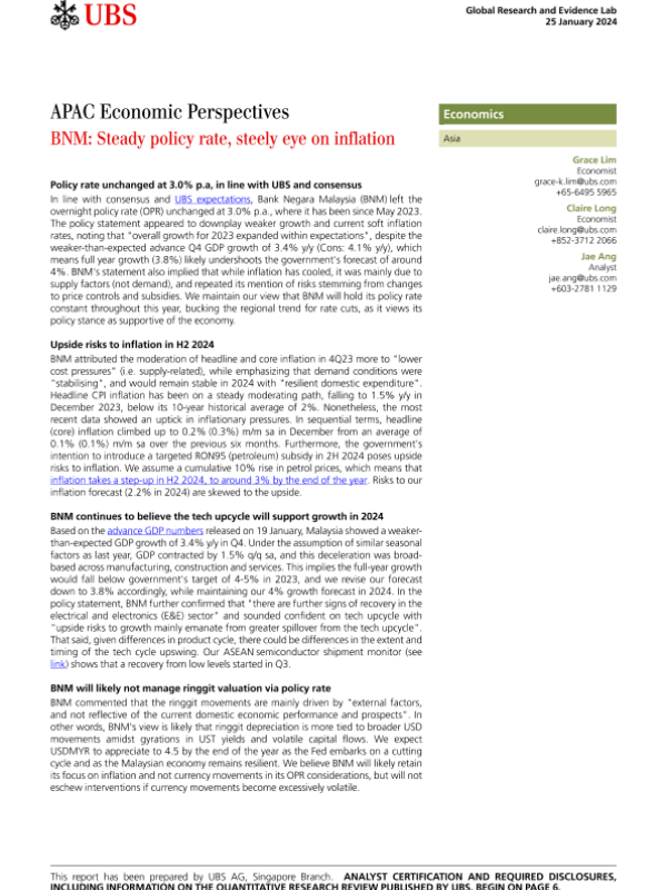 【UBS AG&Singapore Branch】【20240125】APAC Economic Perspectives _BNM Steady policy rate, steely-9页