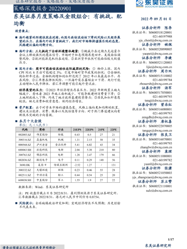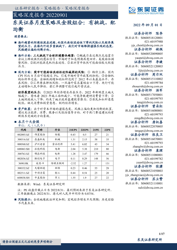 【东吴证券】【20220901】月度策略及金股组合:有挑战,配均衡-17页