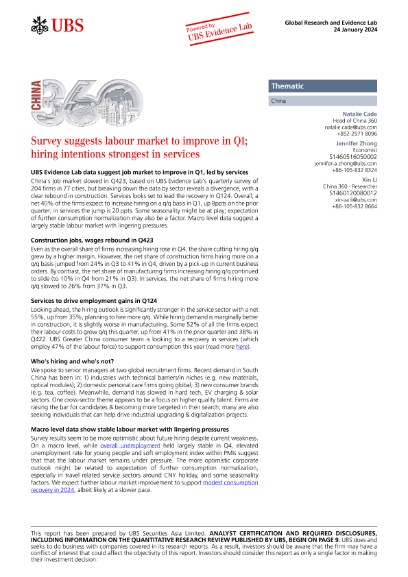 【UBS Securities Asia Limited】【20240124】Survey suggests labour market to improve in Q1; hiring intentions strongest in services-13页