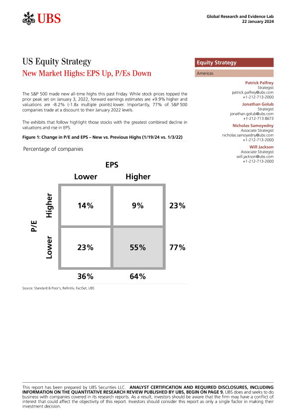 【UBS Securities LLC】【20240122】US Equity Strategy New Market Highs EPS Up, P/Es Down-13页