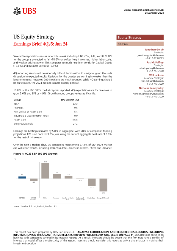 【UBS Securities LLC】【20240124】UBS Equities-US Equity Strategy _Earnings Brief 4Q23 Jan 24-15页