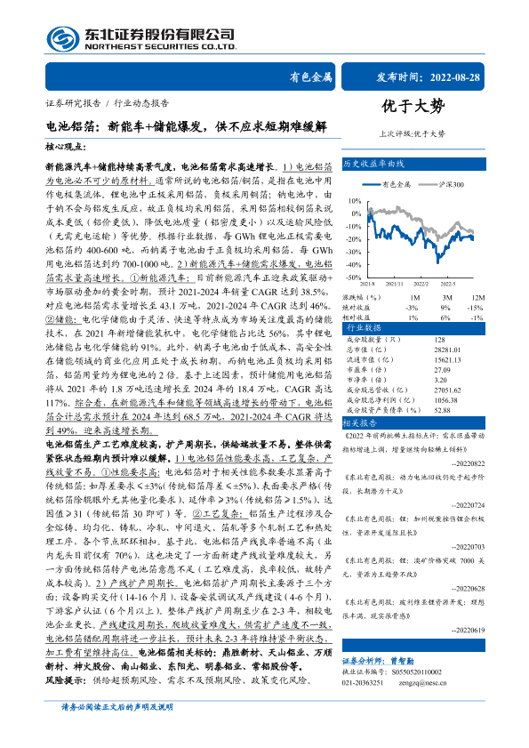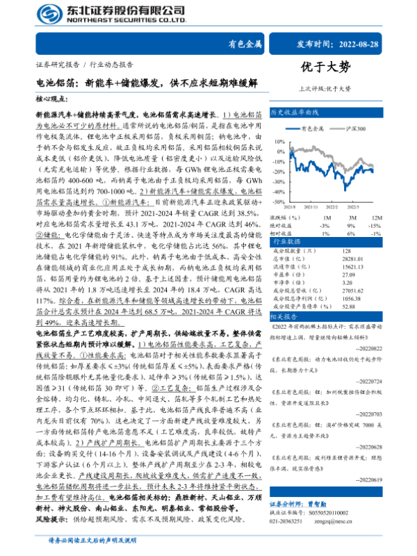 【东北证券】【20220828】电池铝箔:新能车+储能爆发,供不应求短期难缓解-21页
